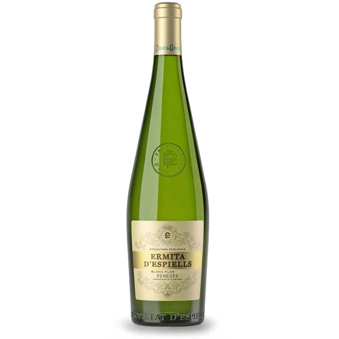 Ermita d’Espiells es un vino blanco de la D.O. Penedès elaborado por Juvé y Camps. La bodega se encuentra en Sant Sadurní d’Anoia (Barcelona). Ermita d’Espiells es un coupage de las variedades autóctonas del Penedès Macabeo, Xarel·lo, Parellada, complementadas con un pequeño porcentaje de Chardonnay. Todas las uvas provienen de las fincas de la bodega La Cuscona y Mediona. Para su elaboración se realizó una vinificación tradicional con una fermentación a temperatura controlada en depósitos de acero inoxidable. Posteriormente Ermita d’Espiells pasó una crianza de 9 meses en la misma botella. Bonito y brillante color amarillo pálido. Aroma intenso y muy agradable. En él destacan notas de frutas blancas, manzanas, peras, así como un ligero fondo floral y de hierbas aromáticas. Equilibrado en boca entre la untuosidad y la acidez, lo que le confiere un paladar muy refrescante.