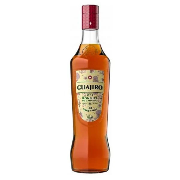 Ronmiel Guajiro 30 es un exquisito ron miel, que combina con armonía la miel de abeja y el ron de Canarias. De color ámbar con brillos dorados, intenso y limpio, con notas de cañas santas y flores, de entrada en boca dulce con recorrido largo, balsámico y con un recuerdo agradable. Se recomienda tomarlo muy frío, solo o con unas piedras de de hielo y una rodaja de limón, ya que combina perfectamente con cítricos.